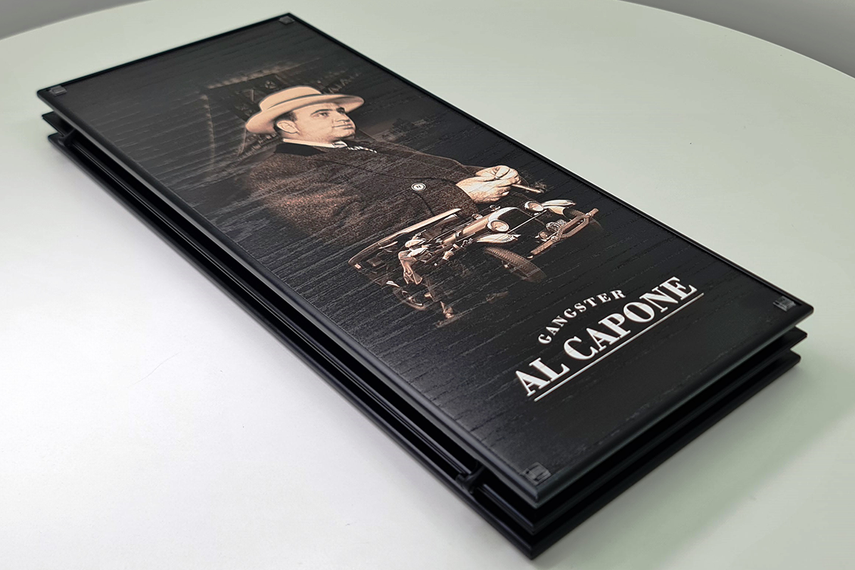 מהדורת “אל קפונה” משלבת אסתטיקה וינטג' עם איכות בנייה מודרנית. veneer אלון מודפס UV בקפידה נמצא בתוך מסגרת אלומיניום מינימליסטית לנוכחות חדה, נצחית.